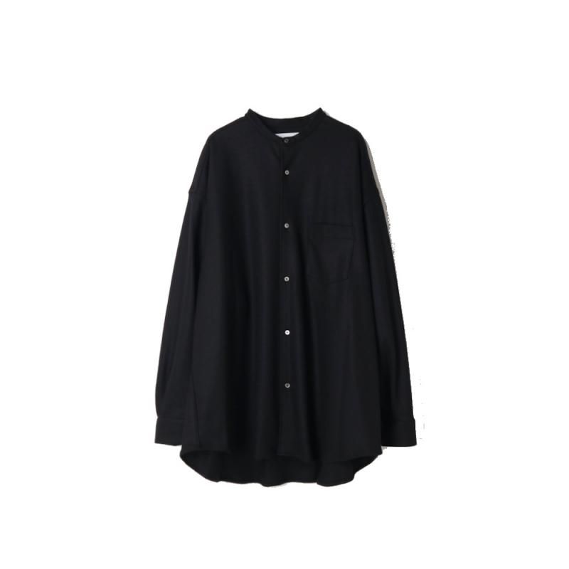 Wool Smooth Flannel Oversized Band Collar Shirt