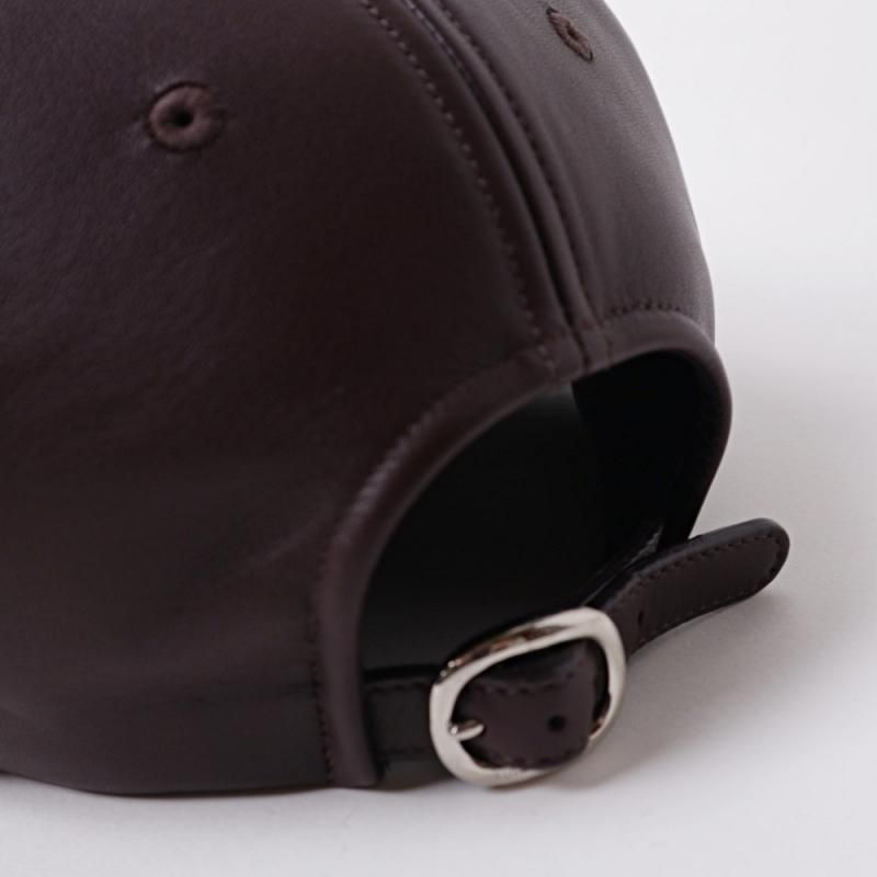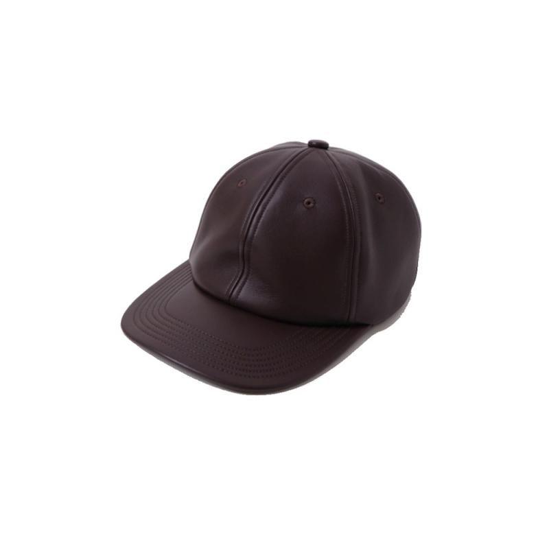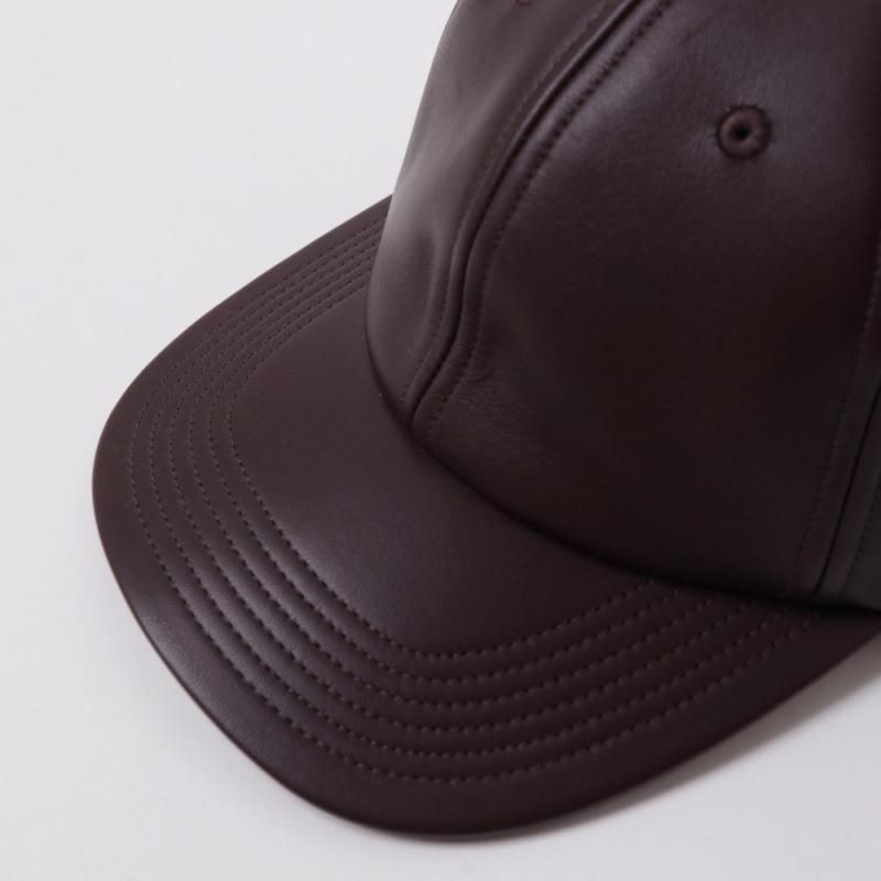 ギリシャ産の上質な原皮をソフトクローム鞣しし、国内で染料染革を用いた6パネルキャップ。