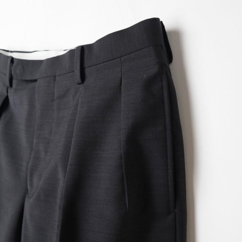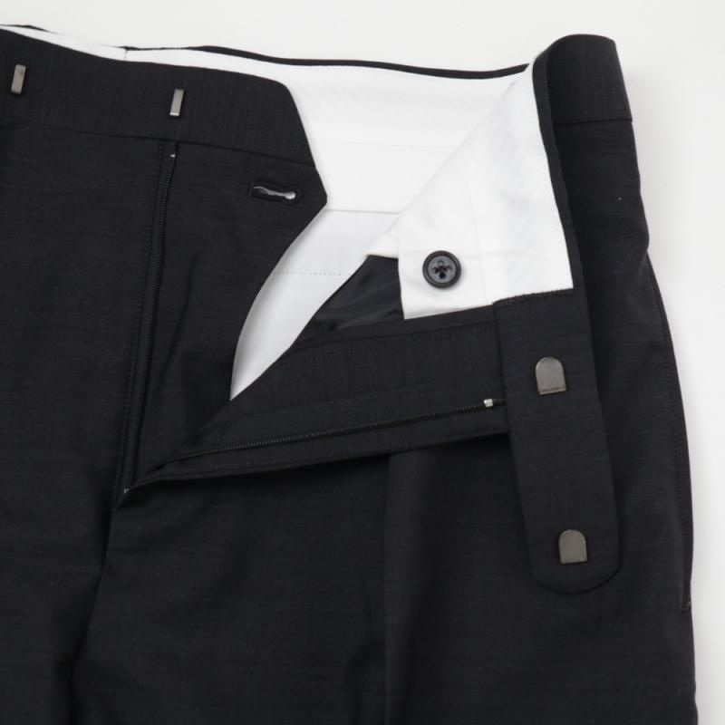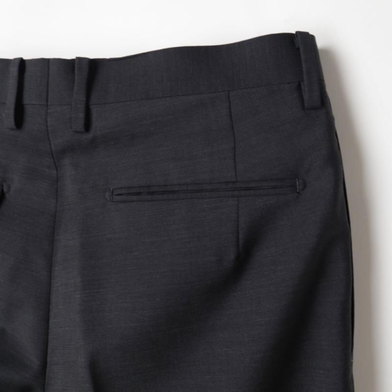 品のある光沢と程よいハリ感が特徴のウール・モヘア生地を使用したブランド定番型のスラックス。