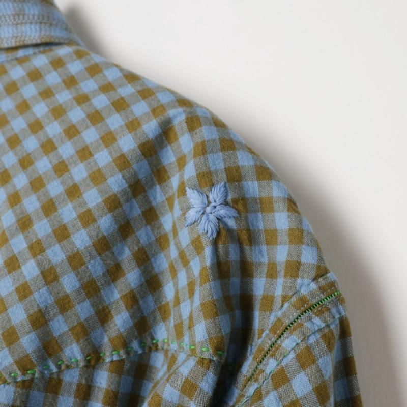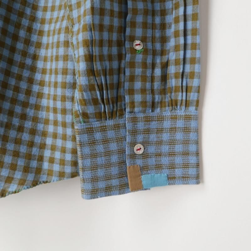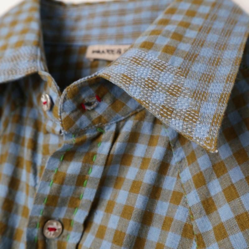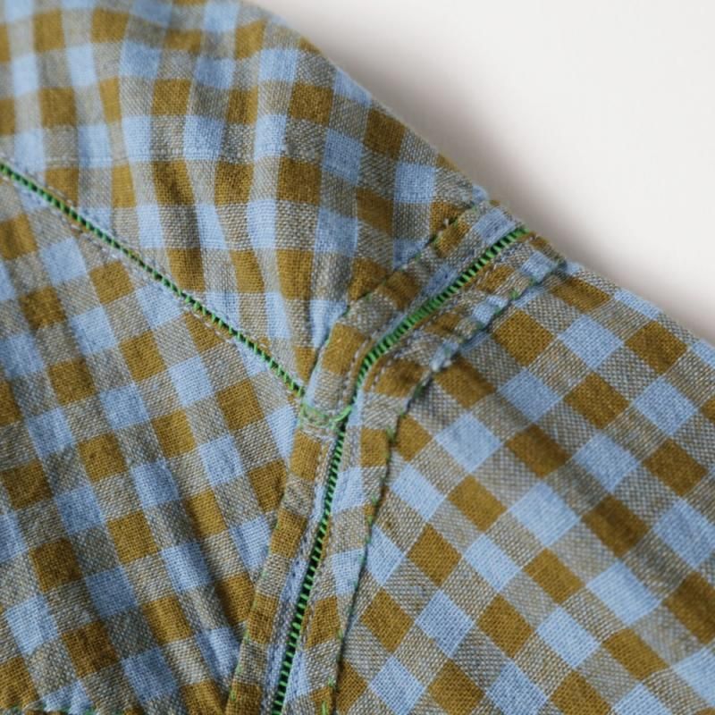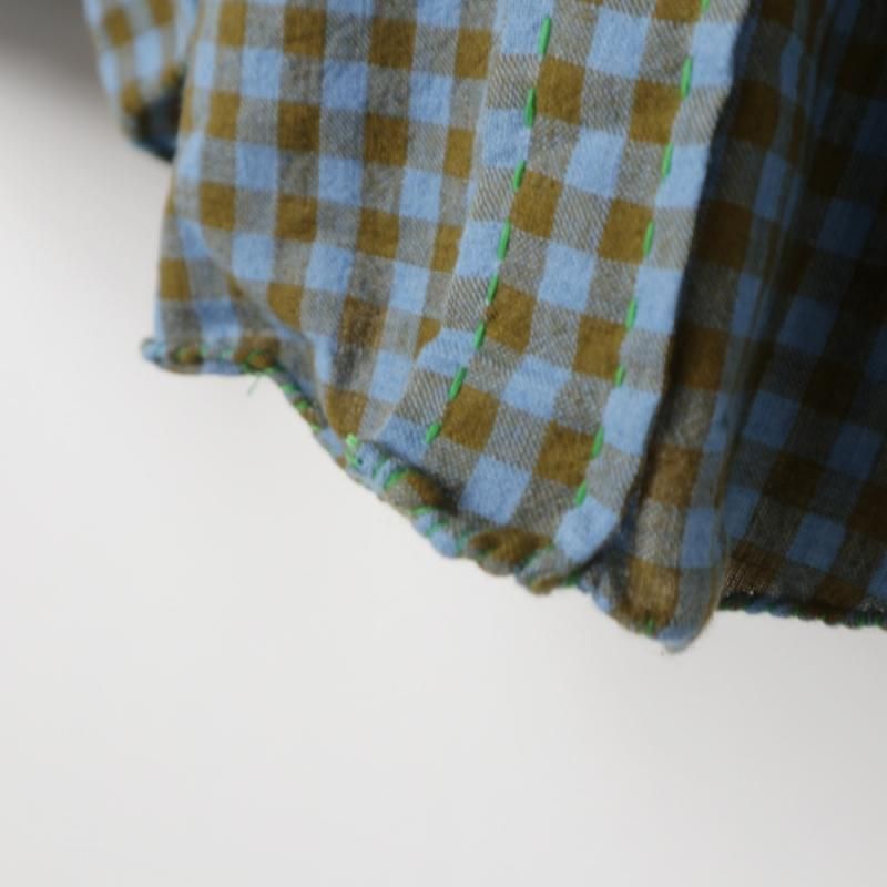 手織りのカディコットンを使用し、ステッチなど手縫いで作られている箇所もあり、味のある表情に仕上げられています。