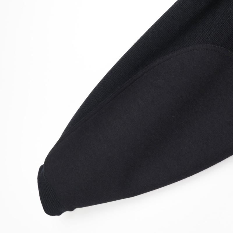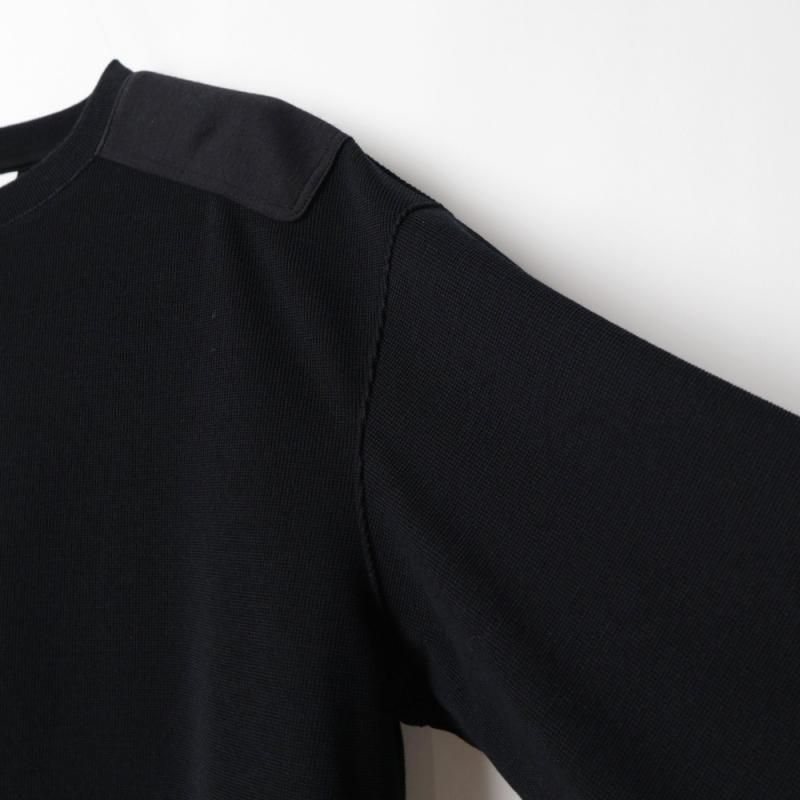 伝統的なフランス軍のコマンドニットから着想した、肘や肩のあて布で補強されたディテールが印象的なデザインです。