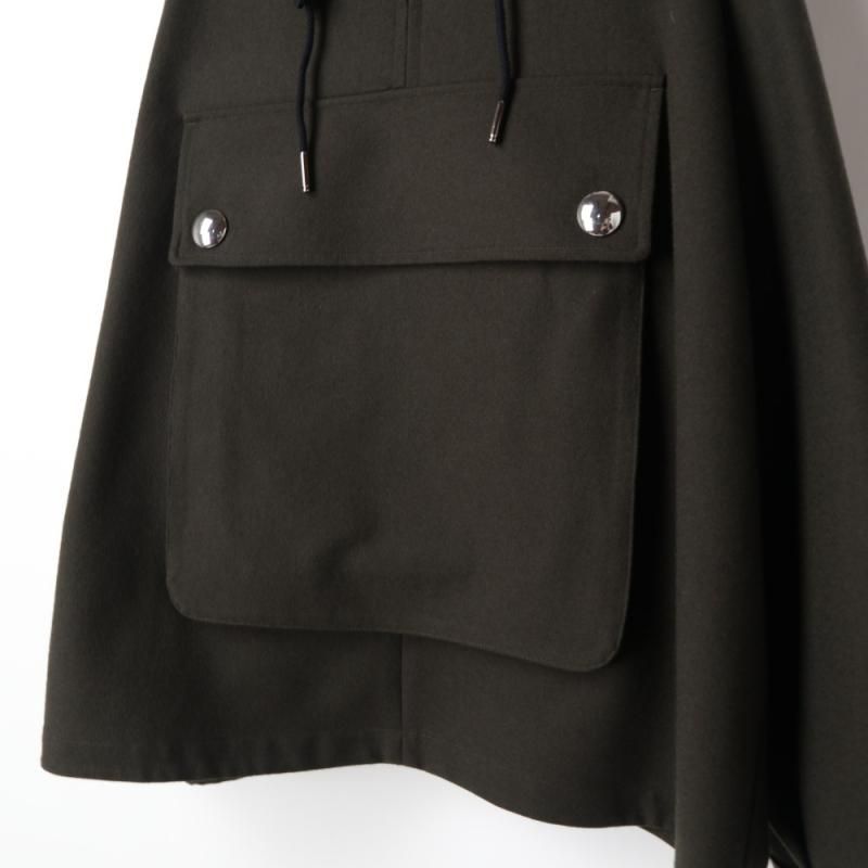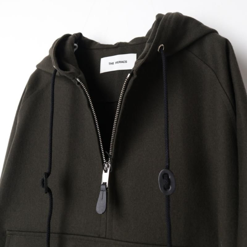 アウトドア用のアノラックパーカーをベースにTHE RERACSらしくモダンにアレンジ、フロントに配置した大きめのフラップポケットが特徴です。