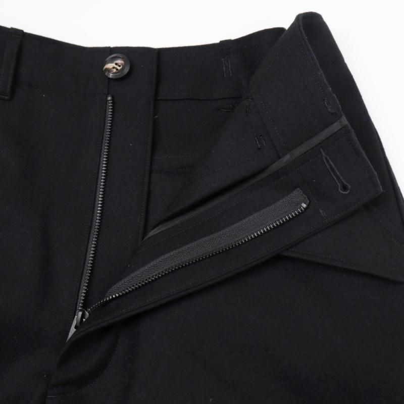 ダイナミックなワイドシルエットですが、リラクスオリジナルのフランネルウールを使用することでしなやかなハリのあるドレープが生まれ、