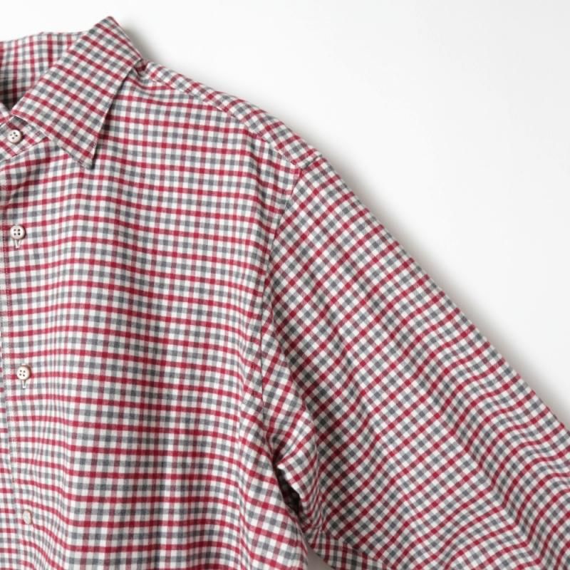 袖幅は広め、袖山の位置は低めに取り、身頃にゆとりをもたせたボックスカットシルエットです。