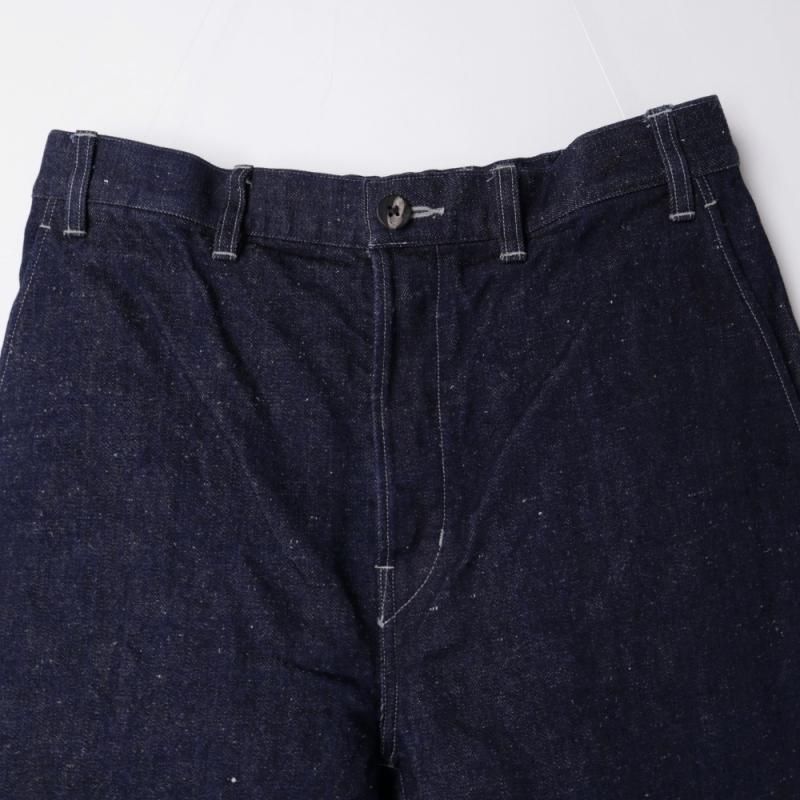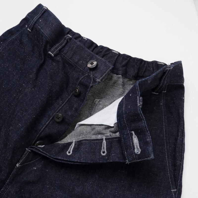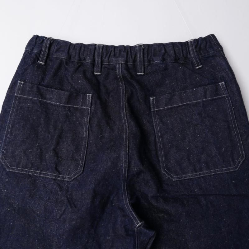 穿き込むほど表面のインディゴが色落ちし、芯の白が浮かび上がることで長期にわたる経年変化が楽しめます。