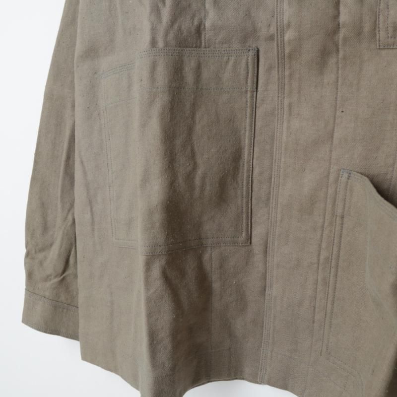 ツールボックスのような機能を持たせた大小三つのポケットが特徴のシャツジャケットです。