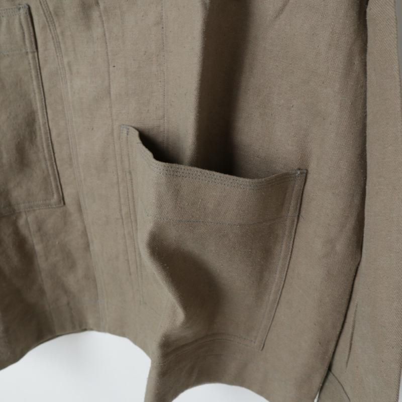 経糸のリネンはハリのある糸で、緯糸には柔らかなシルクを使用することで、綺麗なシルエットが得られると同時に柔らかな素材感も実現しています。
