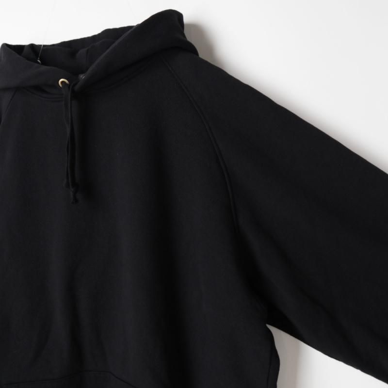 空紡糸を使用した定番のコットン裏毛素材を使用した被りのパーカー。