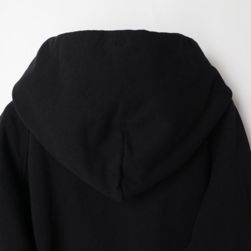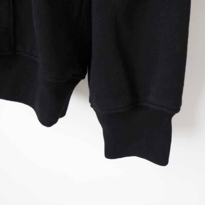 裏毛のフワフワした触感と程よいボリューム、そして表面には空紡糸独特のざらつきのある固く締まった素材感が良い雰囲気を生み出しています。