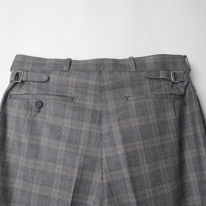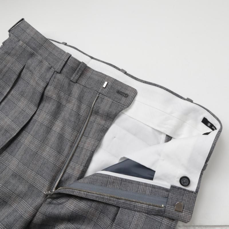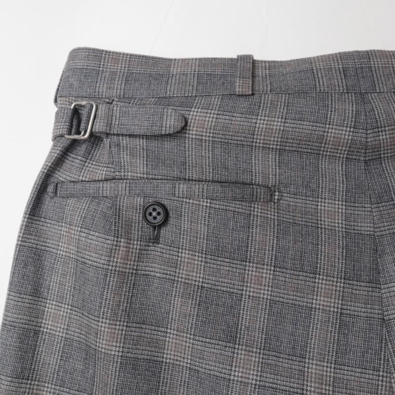 上質なウールを使用し、遠目で見ると柄が目立ちすぎず合わせやすいスラックス。