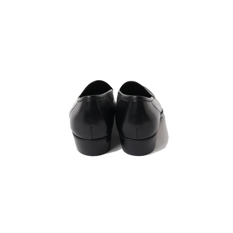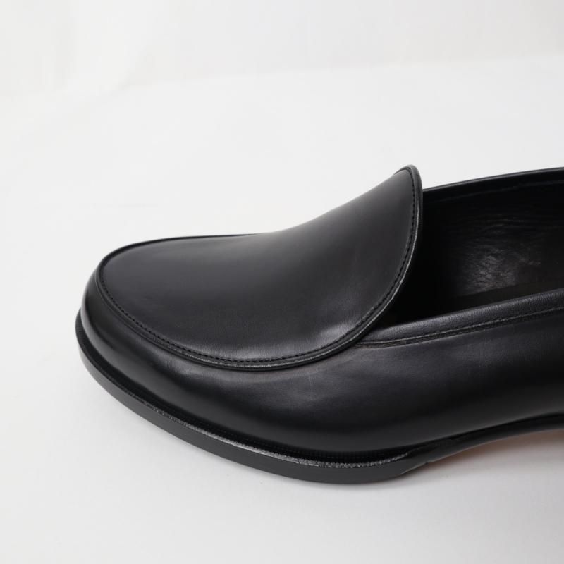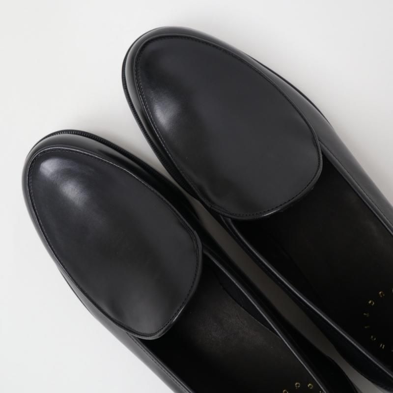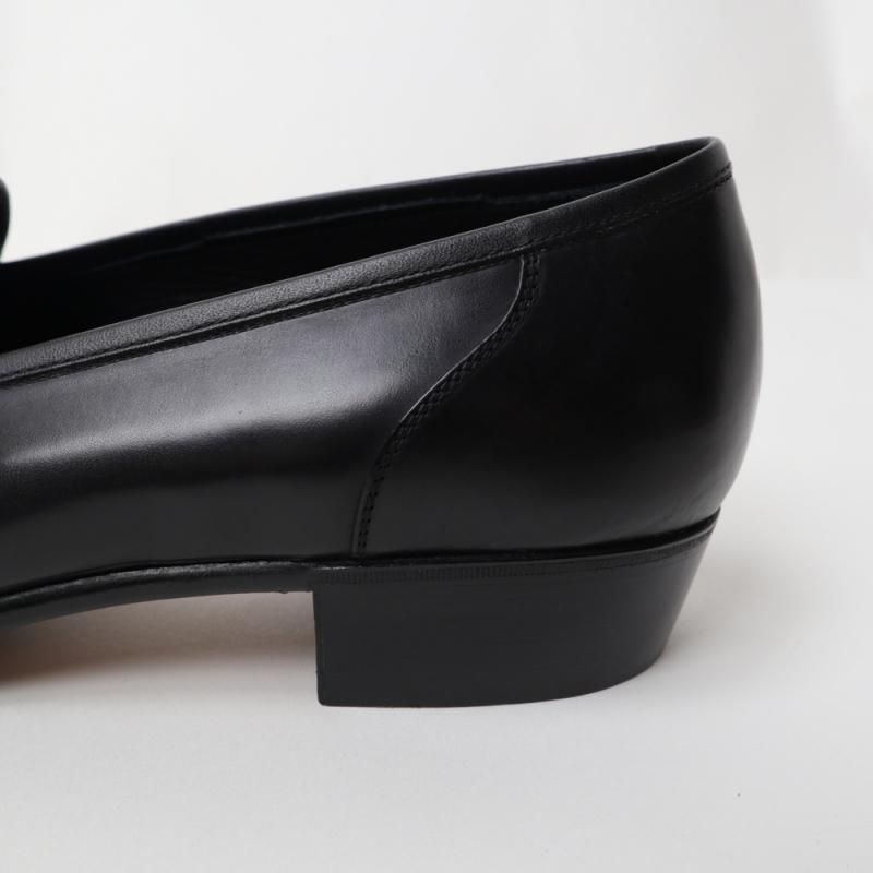 本来はヒールが低くスエードなどのやわらかい革を使い、ライニングや踵の芯を省いてくしゃっと履かせるものですが、“Re-lux”は本格的な外履き仕様。