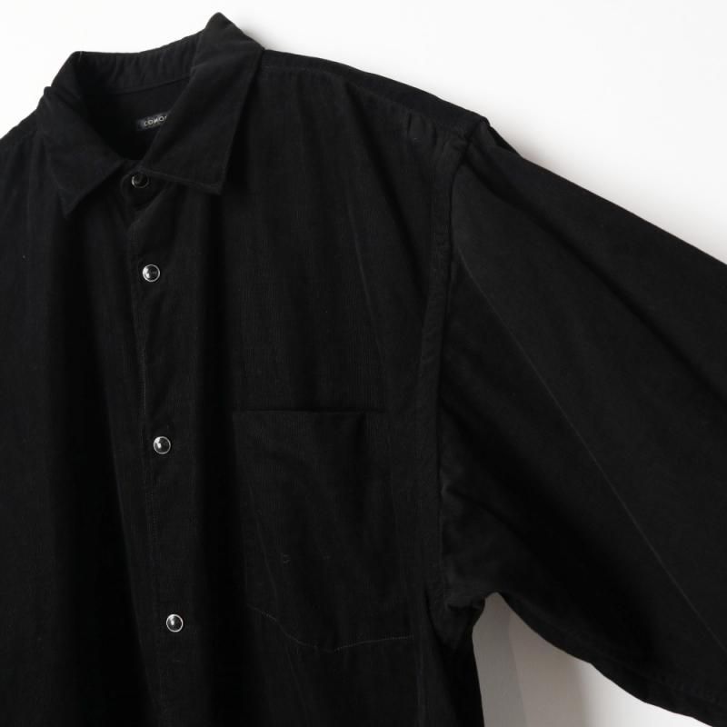 2枚張り合わせの生地で、総裏仕様のように作られたコーデュロイシャツ。