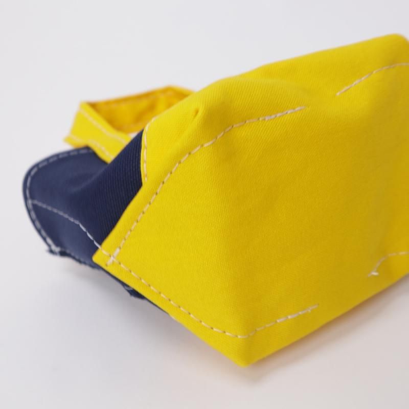 帆布を組み合わせて作られており、配色が目を惹くミニマムなバッグ。
