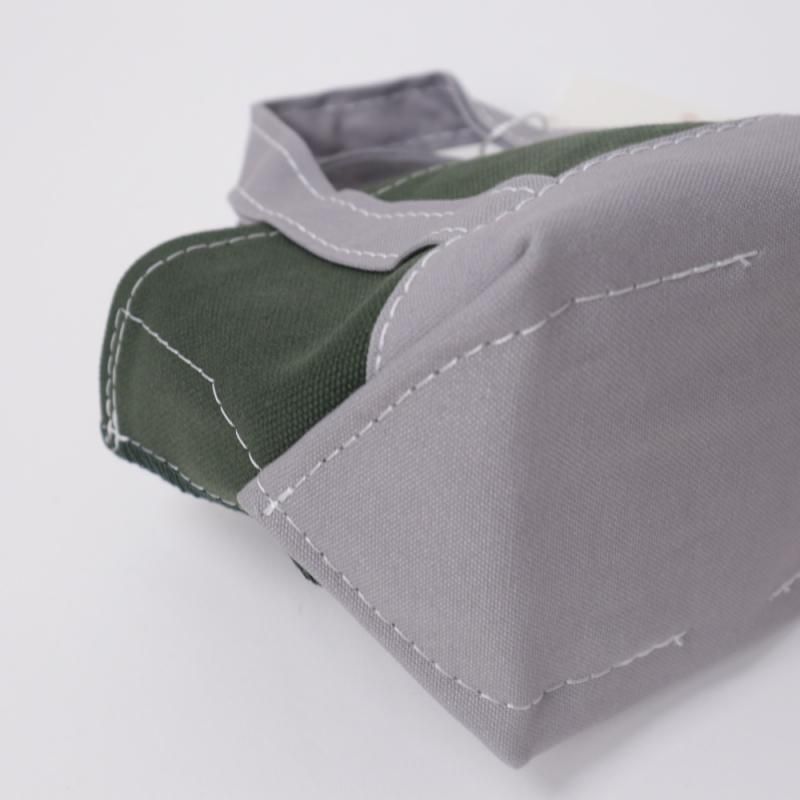帆布を組み合わせて作られており、配色が目を惹くミニマムなバッグ。