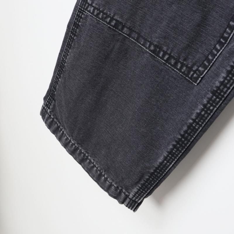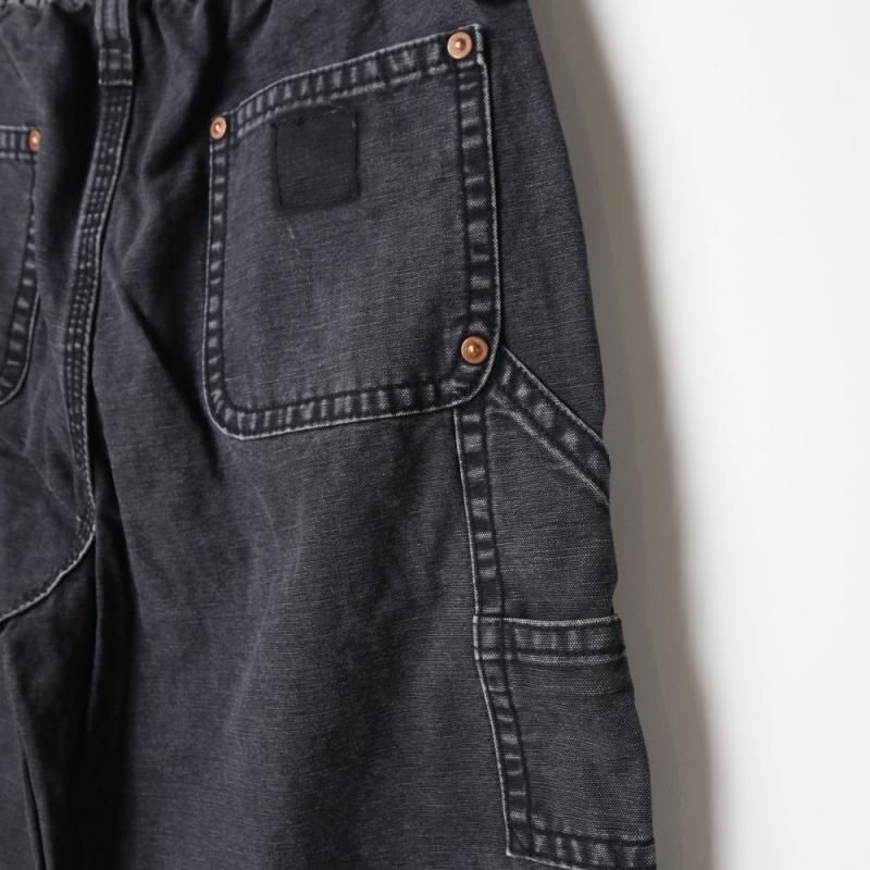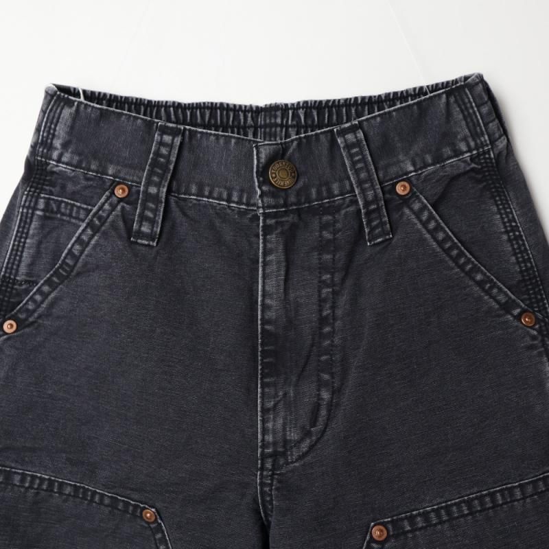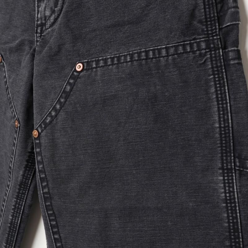 特徴的なダブルニーの仕様に加えて、ワークパンツと言えばなハンマーループやツールポケット、補強のリベット、サイドシームのトリブルステッチ。