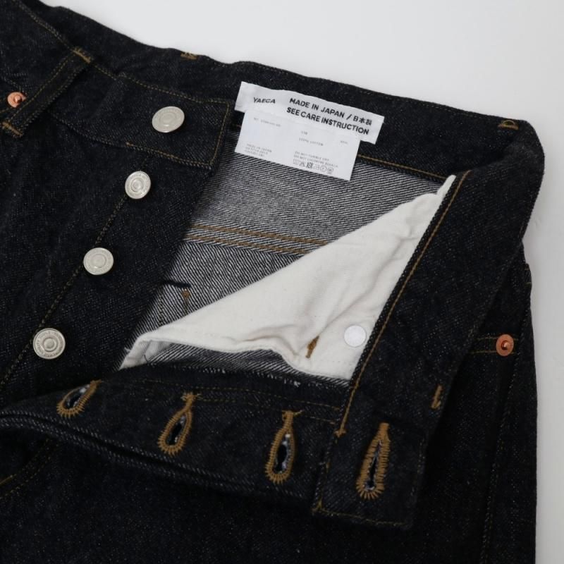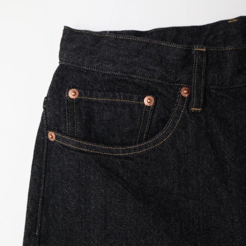 フロントはボタン仕様、オリジナルのリベットやボタンを使用したこだわりのデニムです。