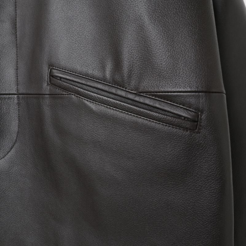きめ細かなシボのラムレザーを使用することで、レザーの無骨さの中に絶妙なやわらかいニュアンスが加わっています。