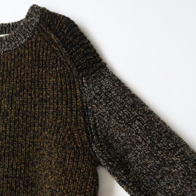 ハンドフレームならではの特性を生かし、編むスピードを調整しながら度目を詰めたり、切れやすく扱いの難しい糸を丁寧に編み込むなど、ニット専業ブランドならではのアイデアが詰まっています。