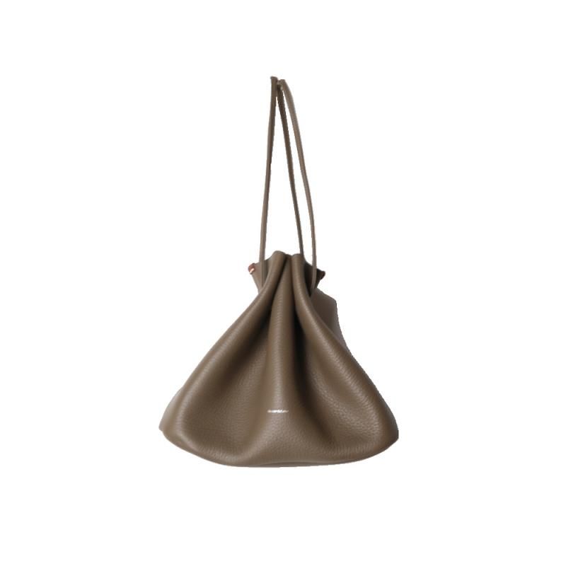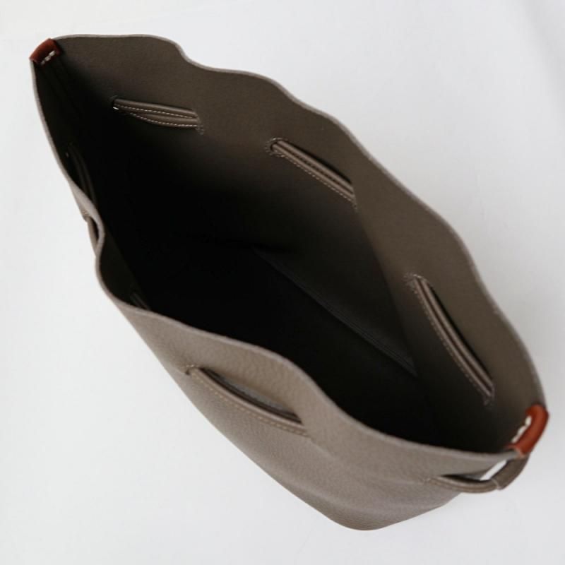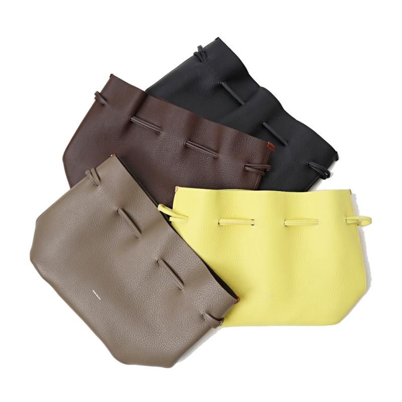開口部の2本の紐は、両サイドから引くと巾着型に、中央から引くとトートのように持つことができ、用途や気分に応じて2通りの持ち方が楽しめます。